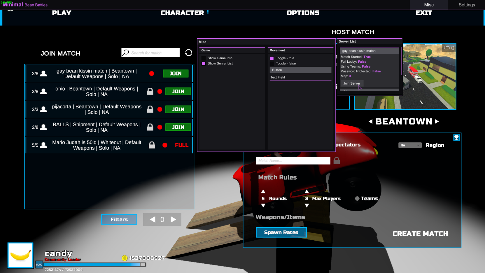 Bypassing protected servers in Bean Battles.